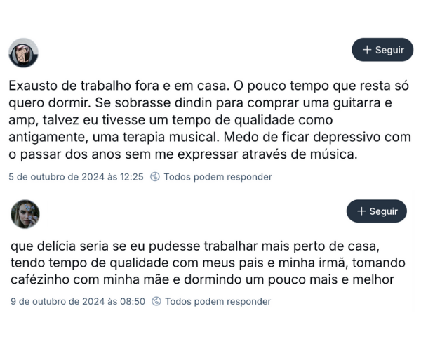 Sob outra perspectiva, uma parte do público aponta o tempo de qualidade como um direito, ressaltando que ele é mais importante que bens materiais. Essas opiniões somam pouco mais de 6%, contrastando com outros 2% que dizem ser um privilégio, não acessível a todos.